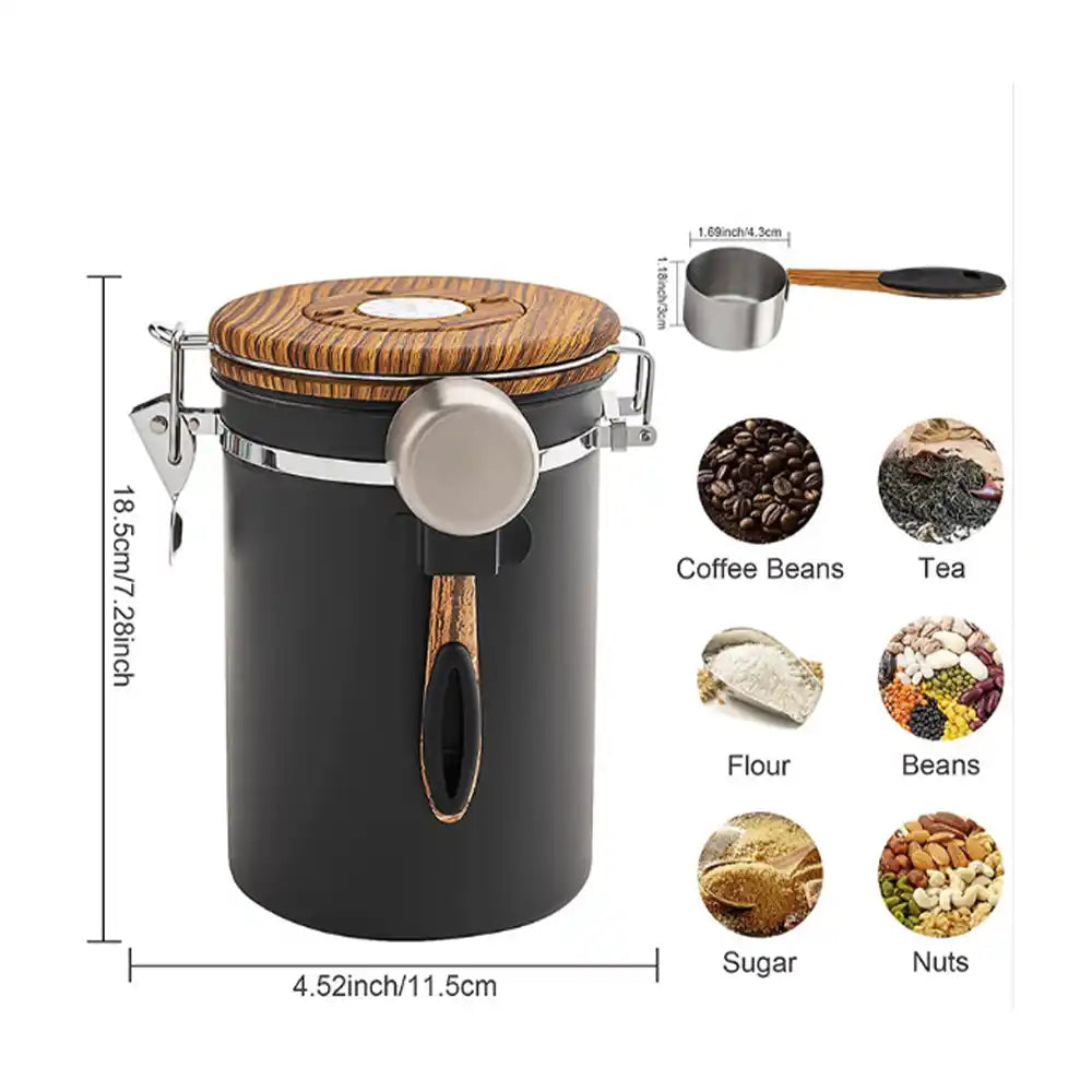 مصنوعة من ستانلس ستيل مقاوم للصدأ مع غطاء بلمسة خشبية أنيقة، وتأتي بملعقة مدمجة لسهولة قياس القهوة في كل مرة.