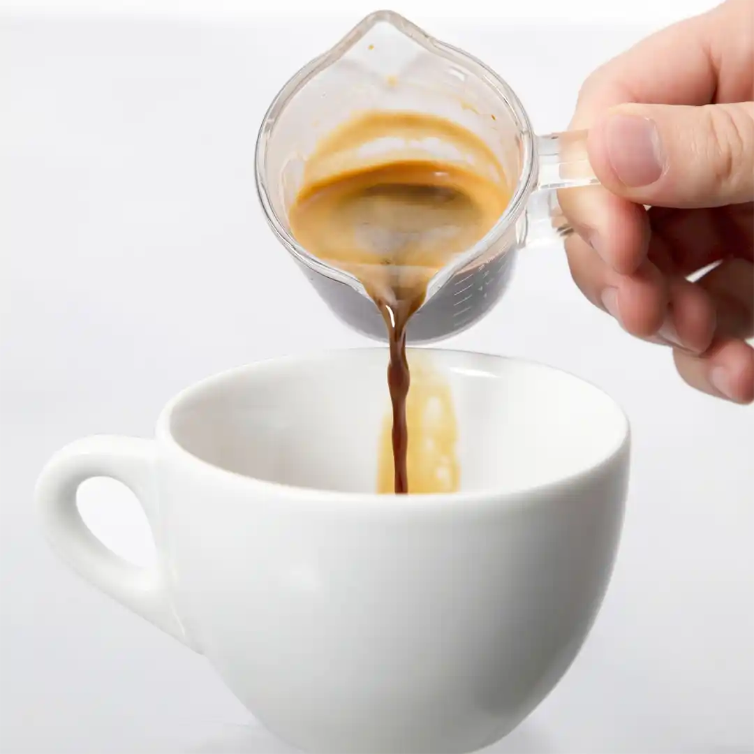 كوب متين بفوهتين مثالي للجرعات المزدوجة , بمقبض لحماية اصابعك من حرارة القهوة الساخنة , مزود بعلامات قياس على طول الكوب تمكنك من الحصول الجرعة الصحيحة في كل مرة